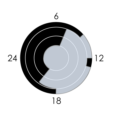 | Supuerposition of activity levels diagrams shows the difference between "Ideal" mix-use program (left) and typical low-variety program (right) leading to "Functional Vacuum". |